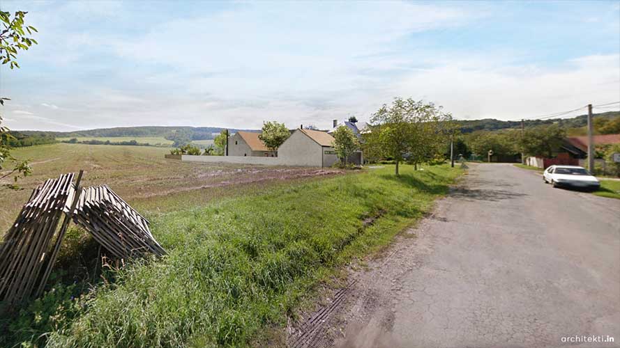 Řešený pozemek situován na samém vnějším okraji obce v Bílých Karpatech. Hluboké úzké parcely odpovídají typické uliční zástavbě s hlubokými hospodářskými dvory a přímou návazností na polnosti. Odsazená uliční fronta vytváří prostorné předzahrady, orientované k severu. Směrem k jihu je dům možné otevřít do soukromé zahrady i výhledům do širší krajiny.